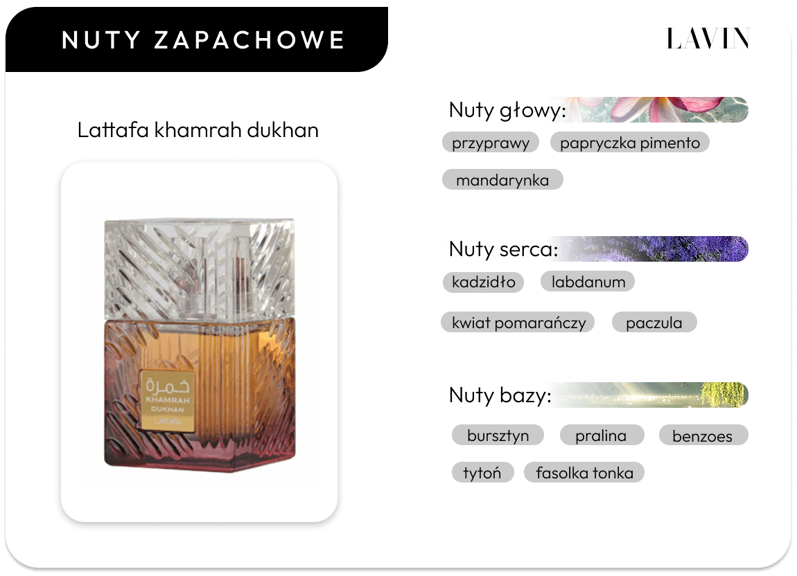 Lattafa Khamrah Dukhan to orientalny zapach przeznaczony zarówno dla kobiet jak i mężczyzn.