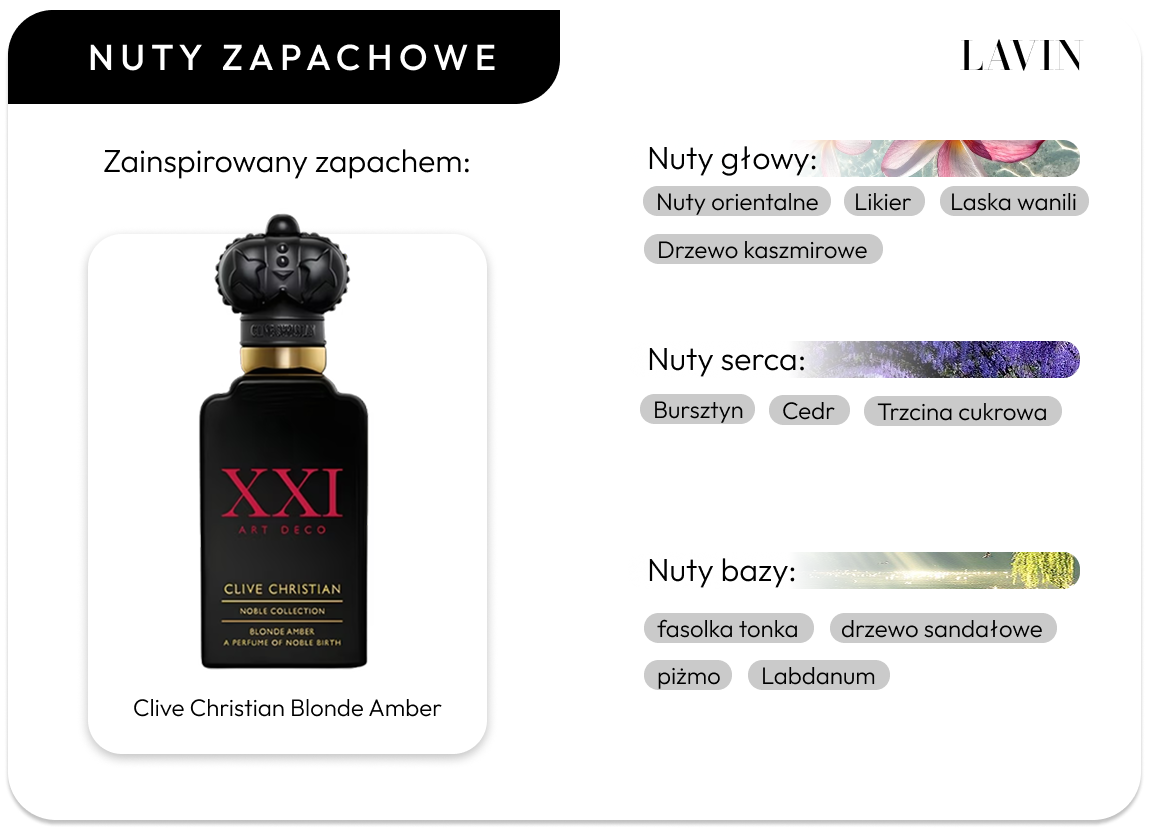 Nuty głowy: laska wanilii, drzewo kaszmirowe, nuty orientalne, likier