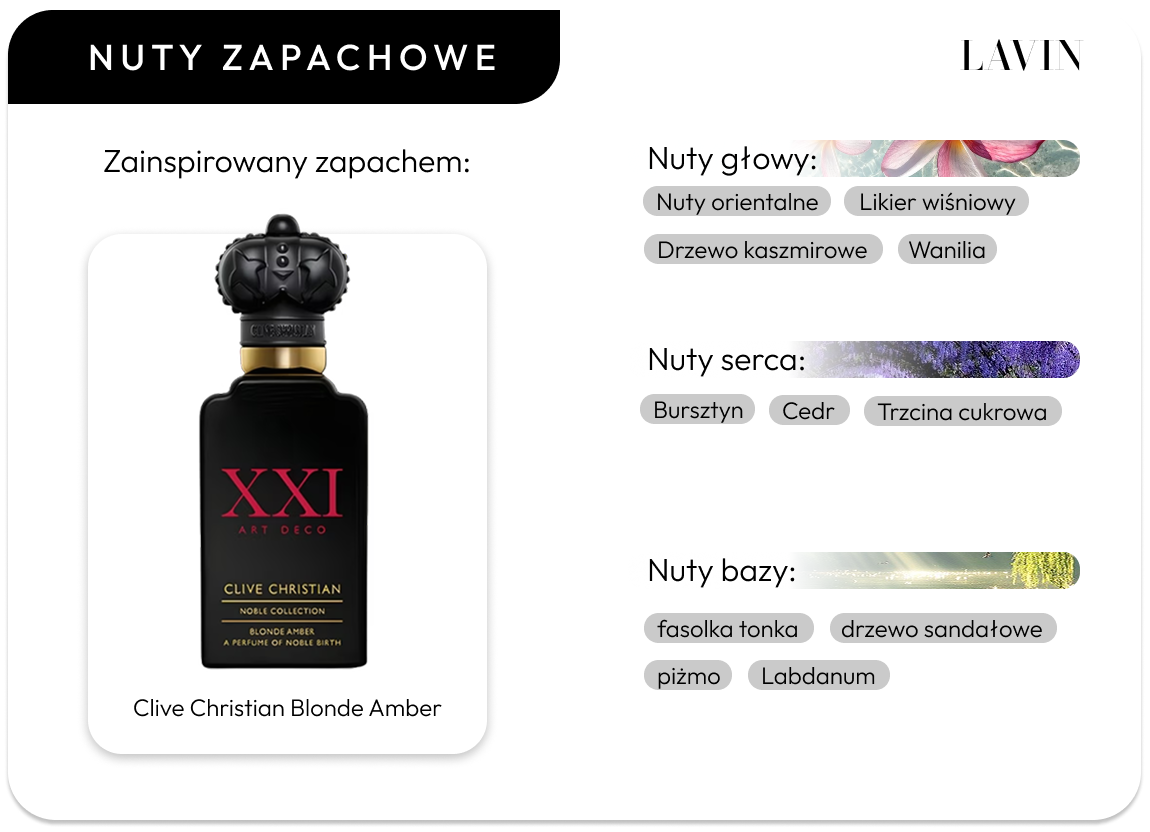 Nuty głowy: nuty orientalne, drzewo kaszmirowe, likier wiśniowy, wanilia