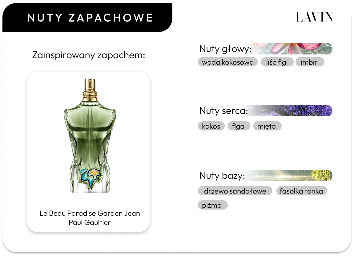 Nuty głowy: liść figi, woda kokosowa, imbir
